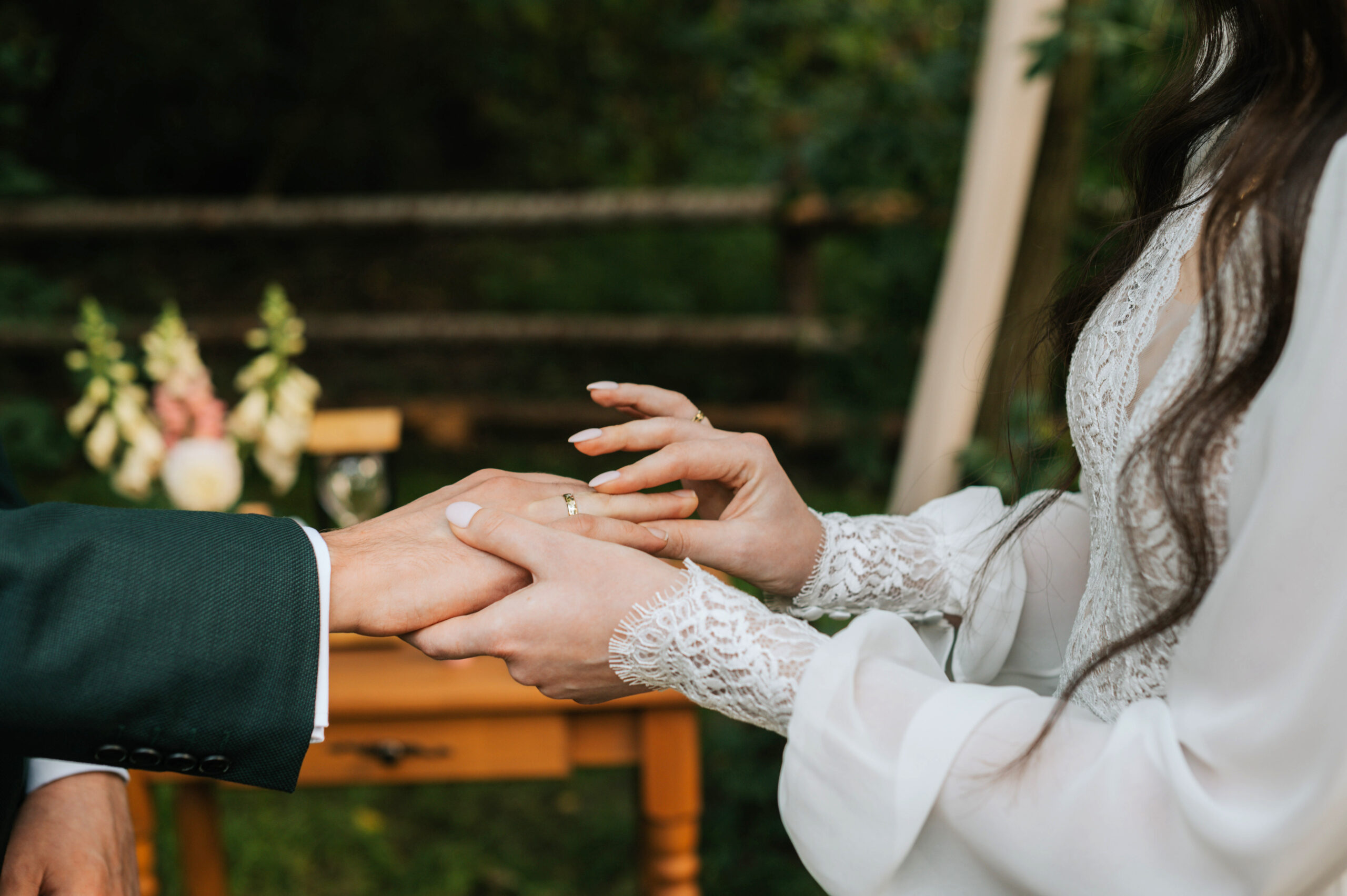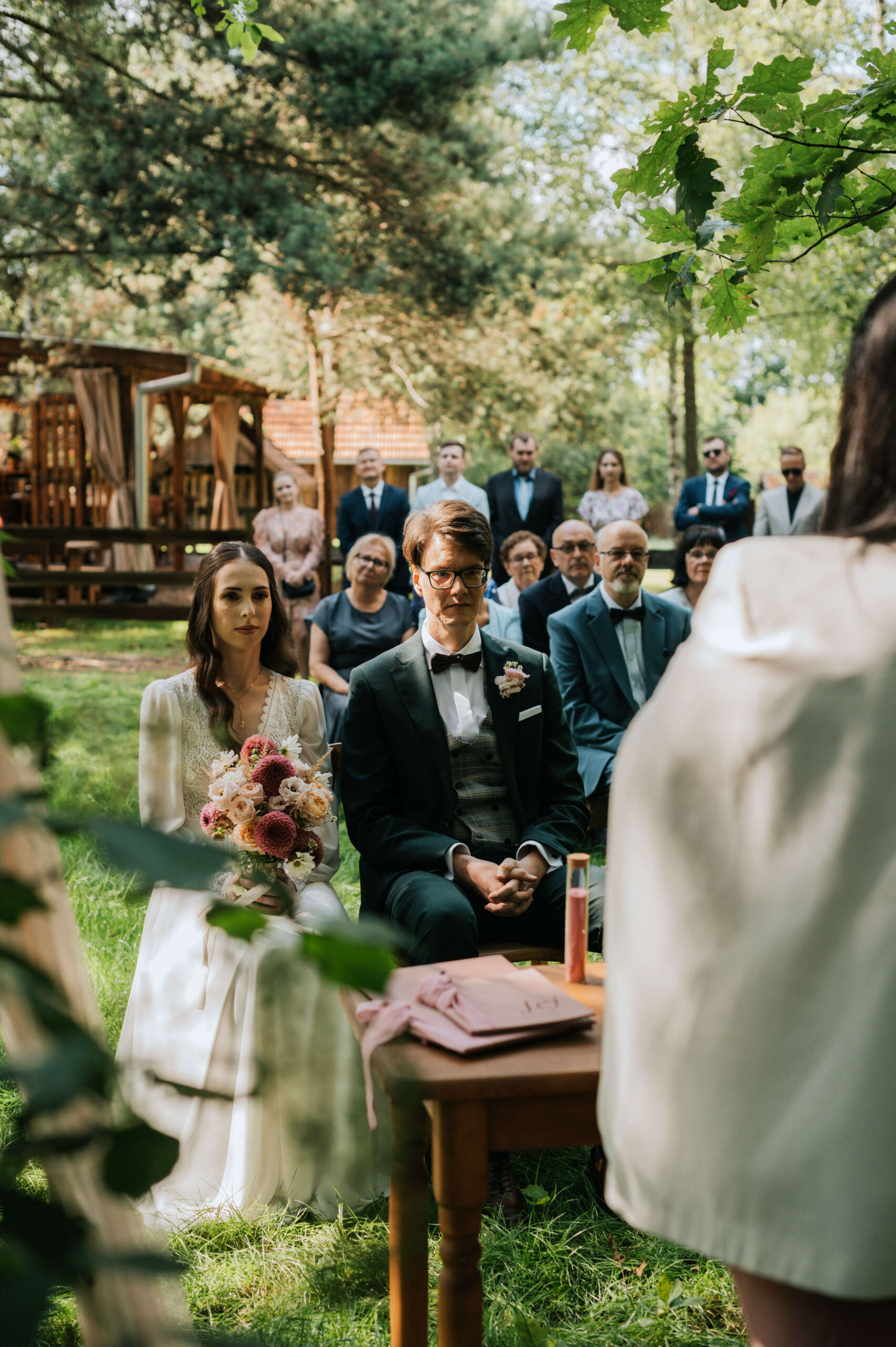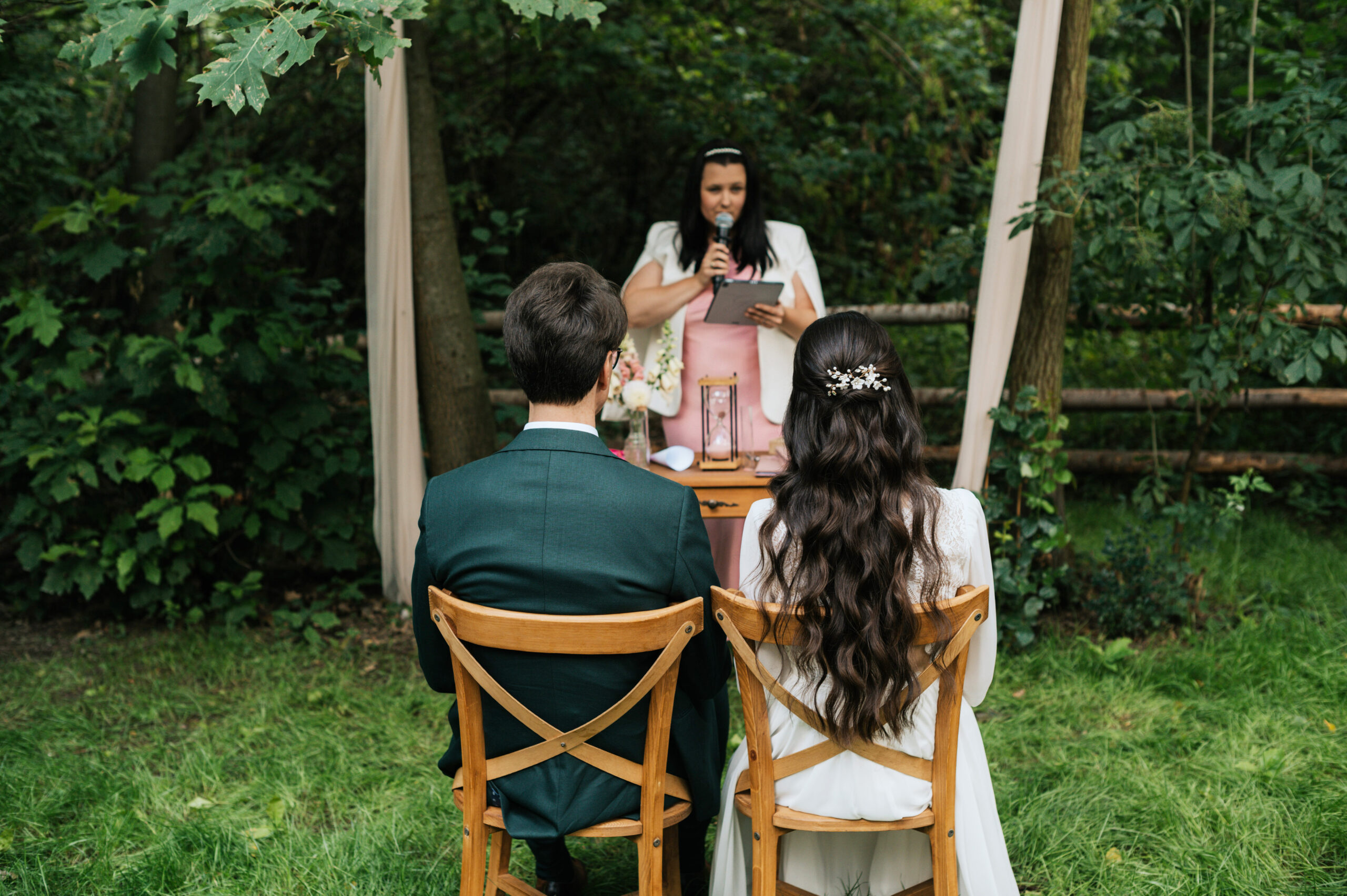 Perspektywa ślubu na polanie wśród drzew brzmi wspaniale, a na żywo? To coś, czego się nie zapomina. Tym bardziej jeśli jest to ceremonia humanistyczna. Specjalistką i częstą bywalczynią Gospody jest Ania, z którą współpraca płynęła bezbłędnie.