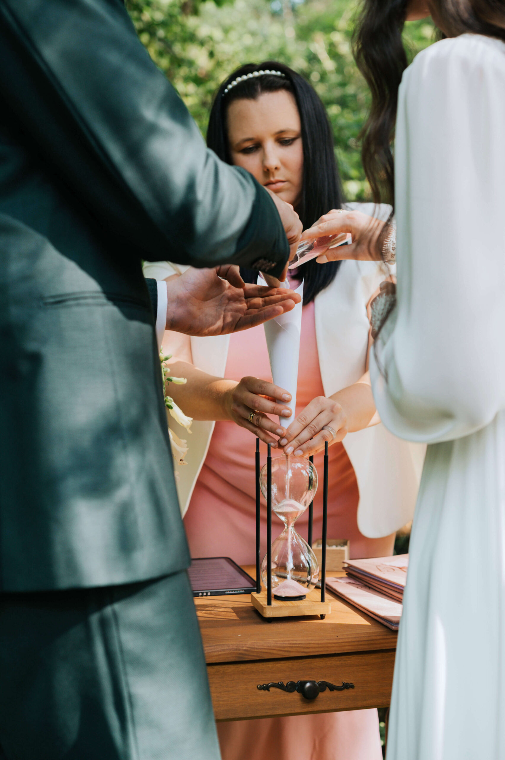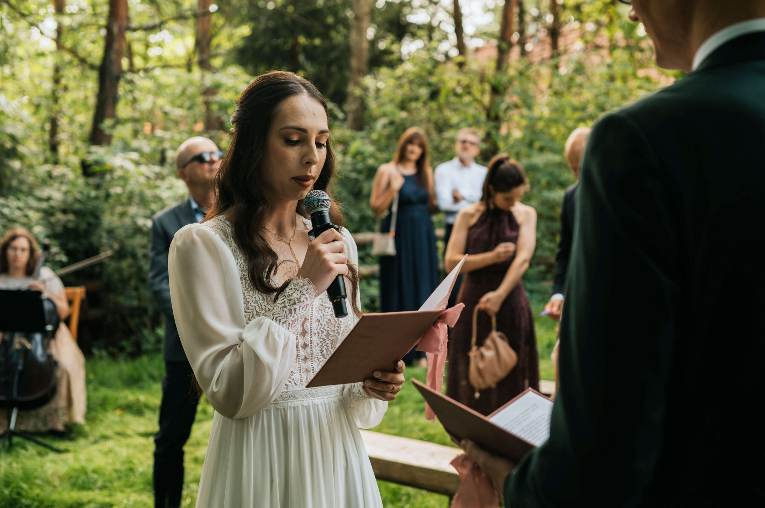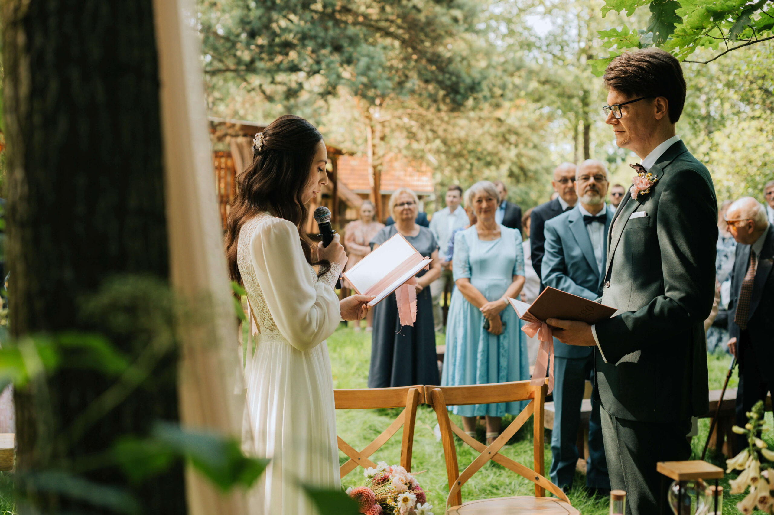 Perspektywa ślubu na polanie wśród drzew brzmi wspaniale, a na żywo? To coś, czego się nie zapomina. Tym bardziej jeśli jest to ceremonia humanistyczna. Specjalistką i częstą bywalczynią Gospody jest Ania, z którą współpraca płynęła bezbłędnie.